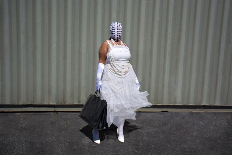 “Bag Lady with the Pearls and Cap 2”